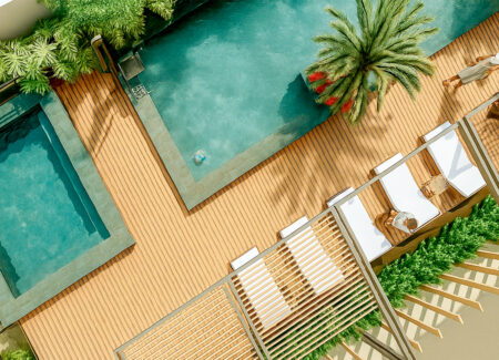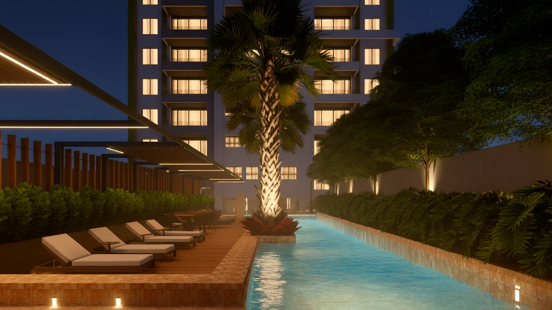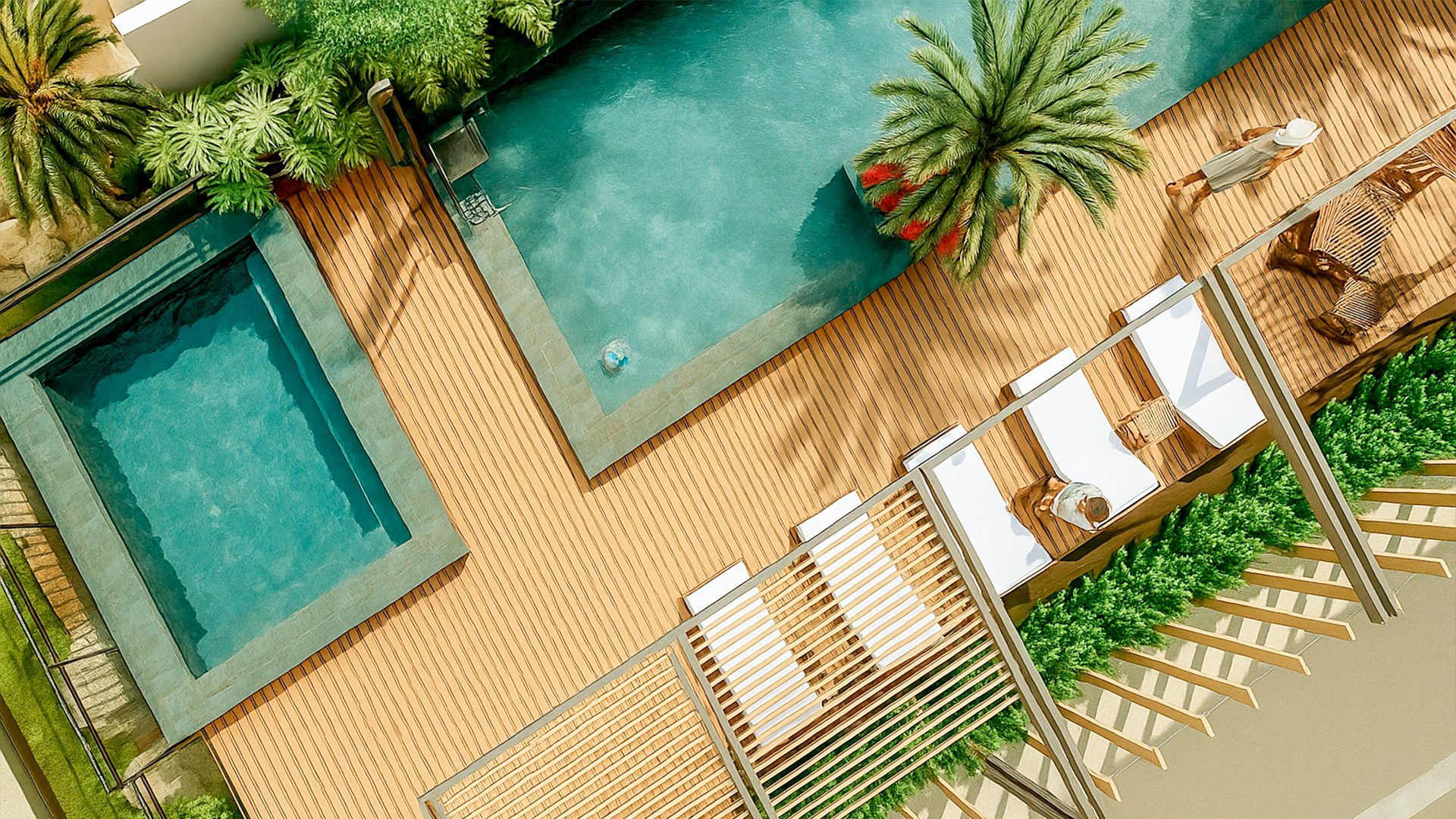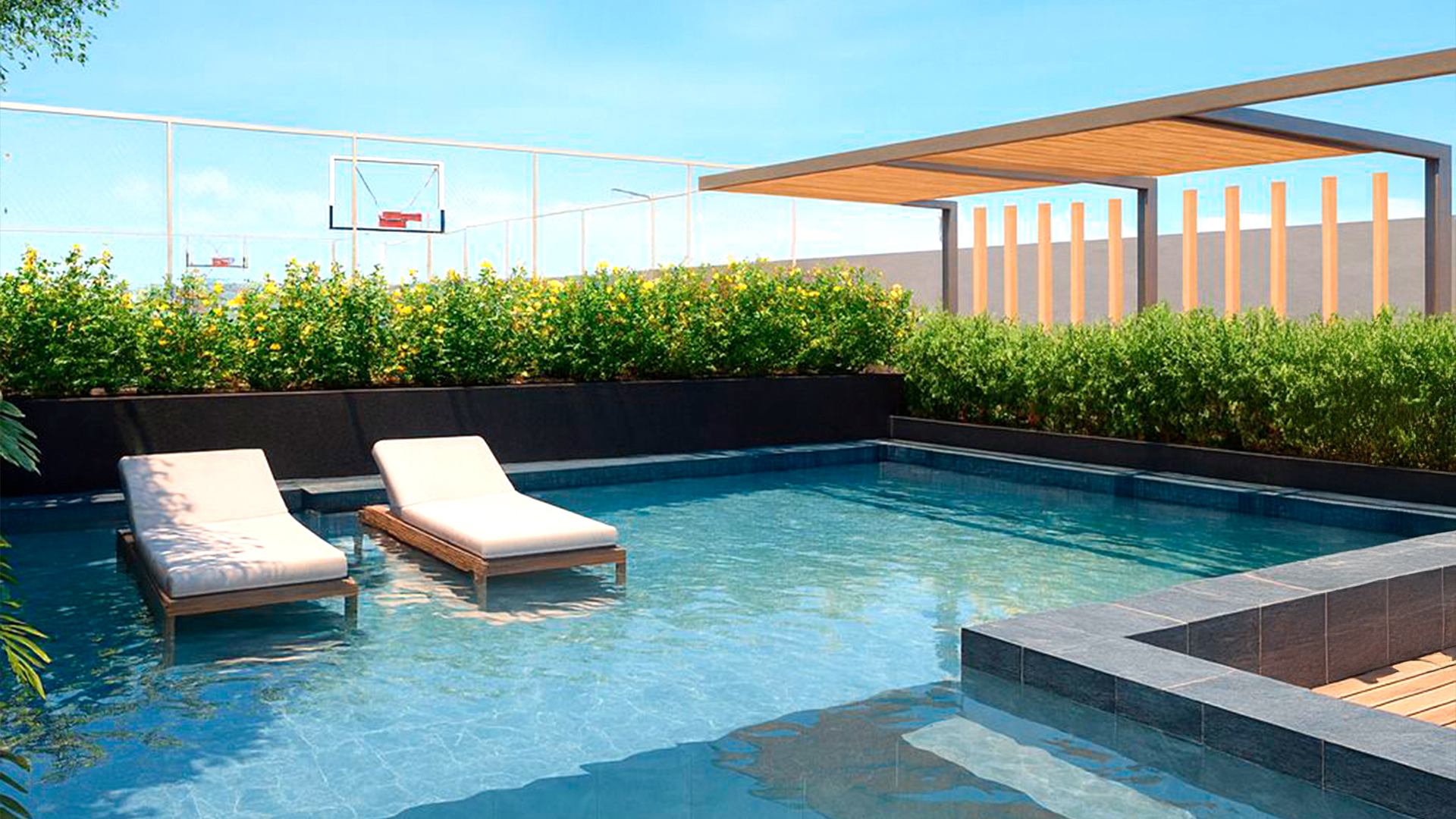 Piscina com área de descanso
