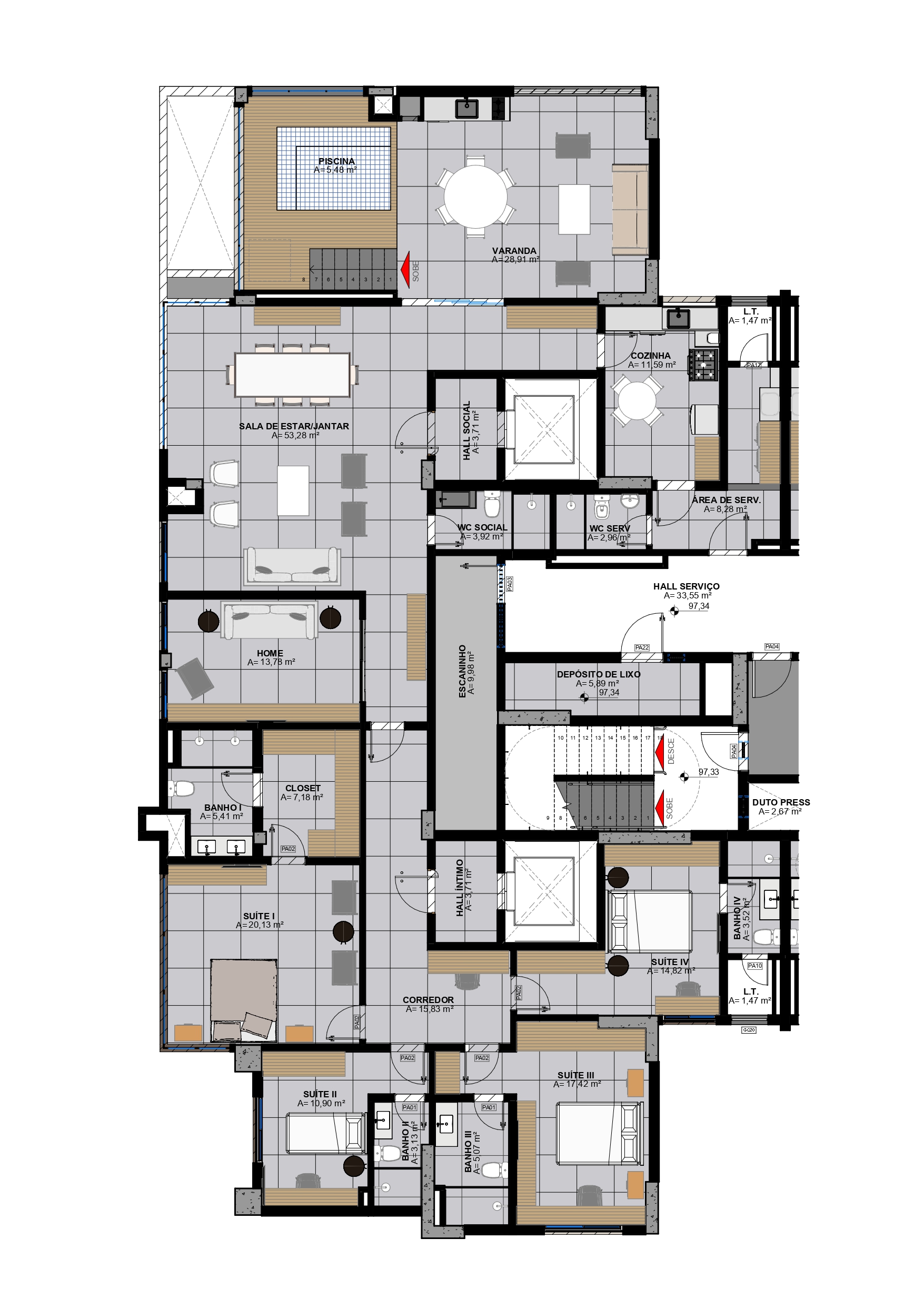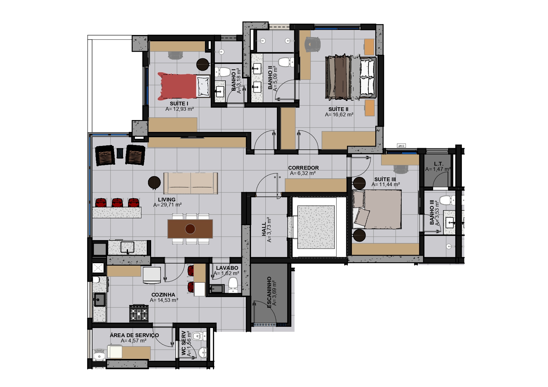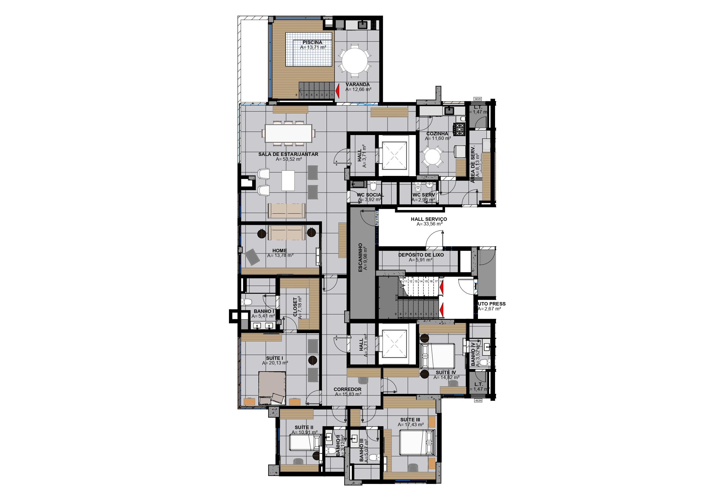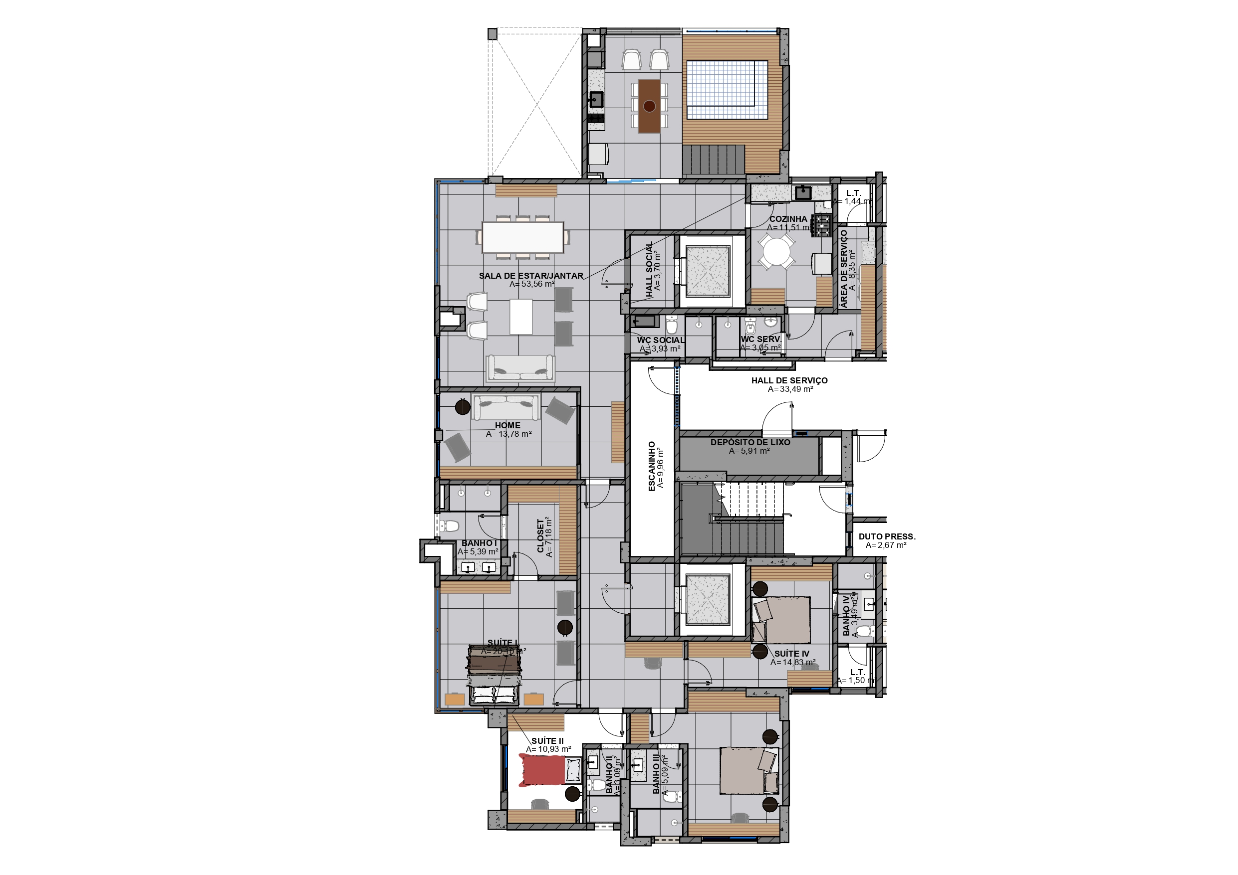 • Área privativa: 143,54 m²