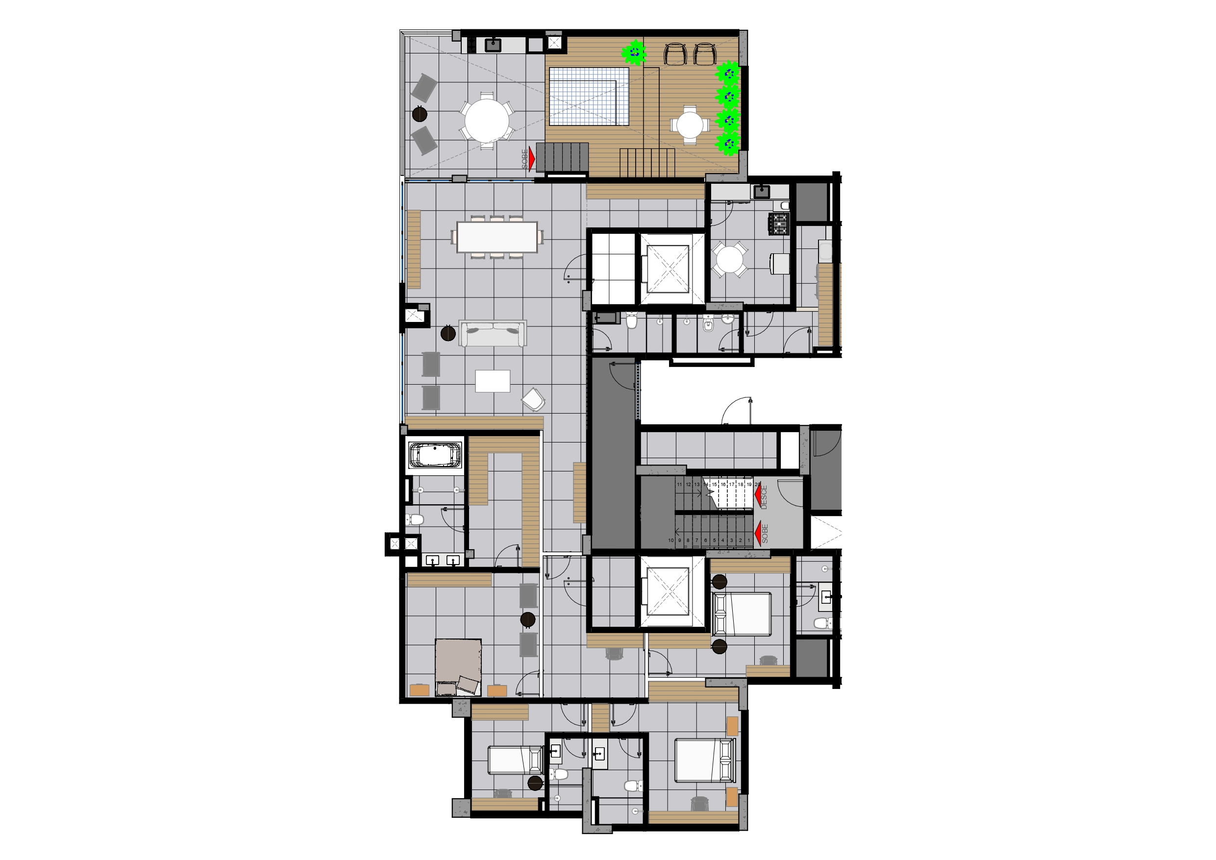 • Planta com ambientes integrados, iluminados e circulação inteligente
